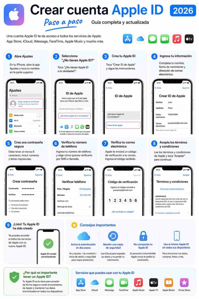 Crear cuenta Apple ID paso a paso (Guía completa y actualizada 2026)
